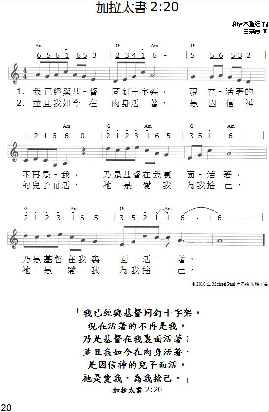 白霈德牧師聖經詩歌 – 加拉太書2:20 Posted bylutheranchinese August 28, 2020December 29, 2020 Leave a comment on 白霈德牧師聖經詩歌 – 加拉太書2:20 分享这个页面 Share !