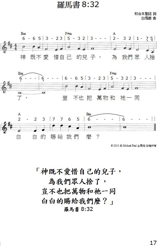 白霈德牧師聖經詩歌 – 羅馬書8:32 Posted bylutheranchinese August 28, 2020December 29, 2020 Leave a comment on 白霈德牧師聖經詩歌 – 羅馬書8:32 分享这个页面 Share !